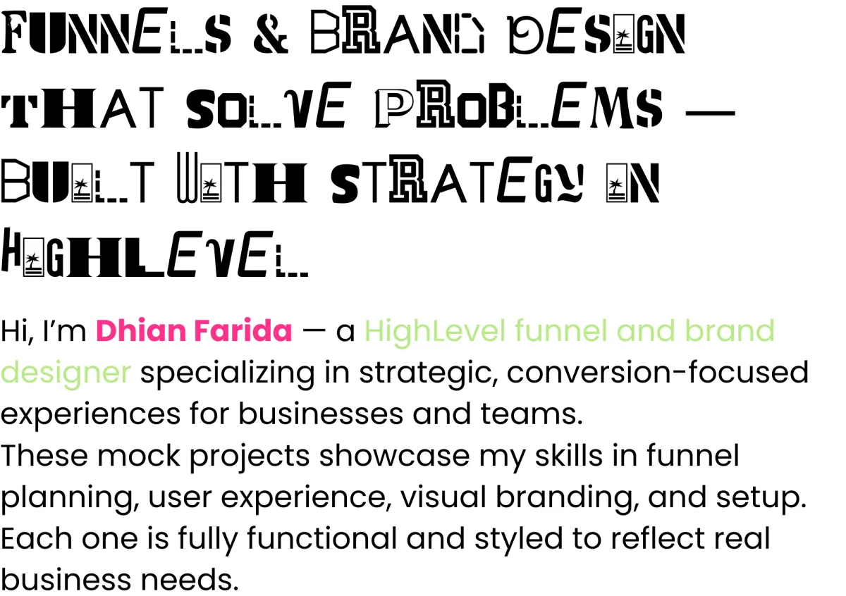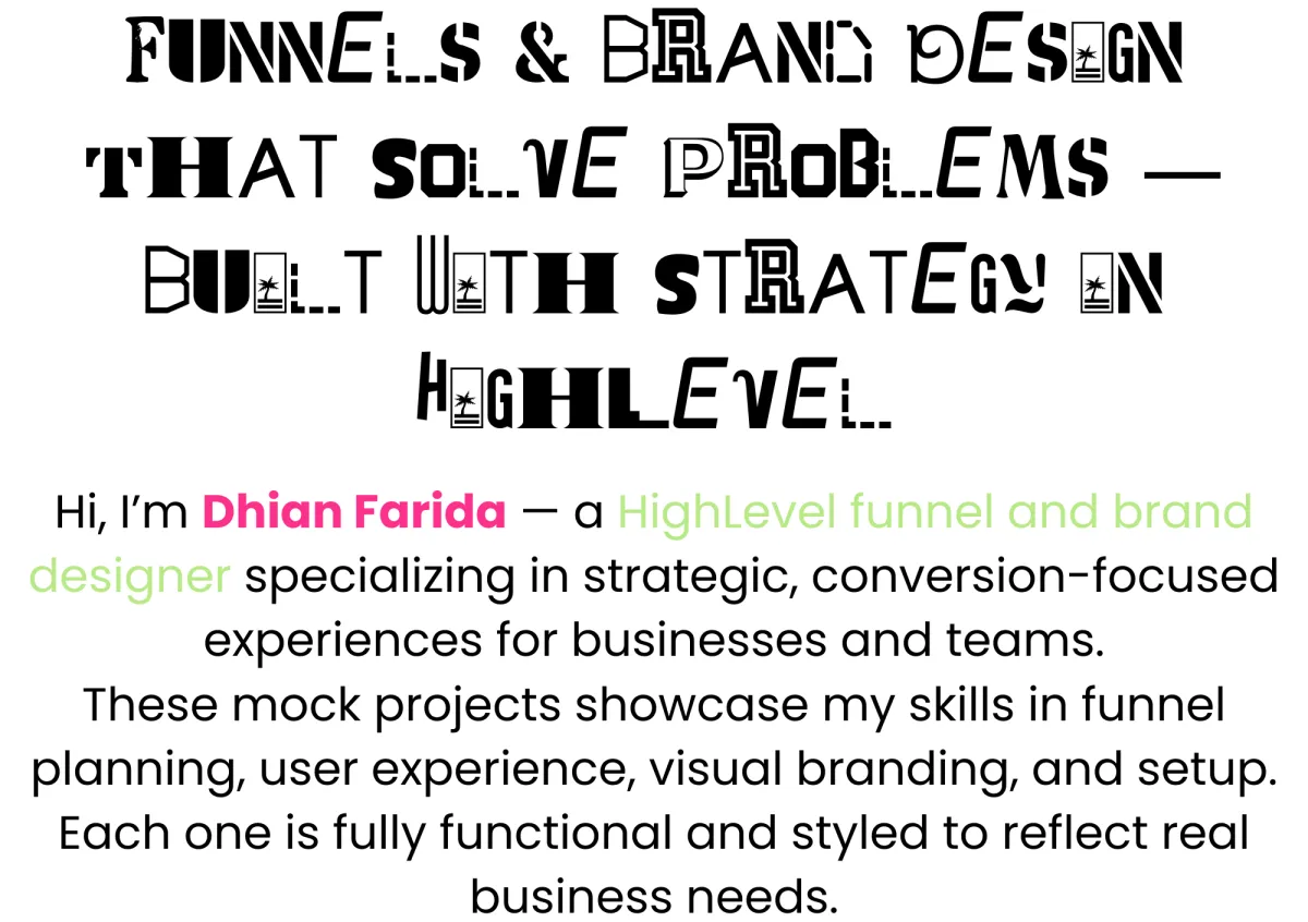 With an eye for both aesthetics and function, I create polished, brand-aligned funnels ready for real-world use—even if they're still portfolio concepts.